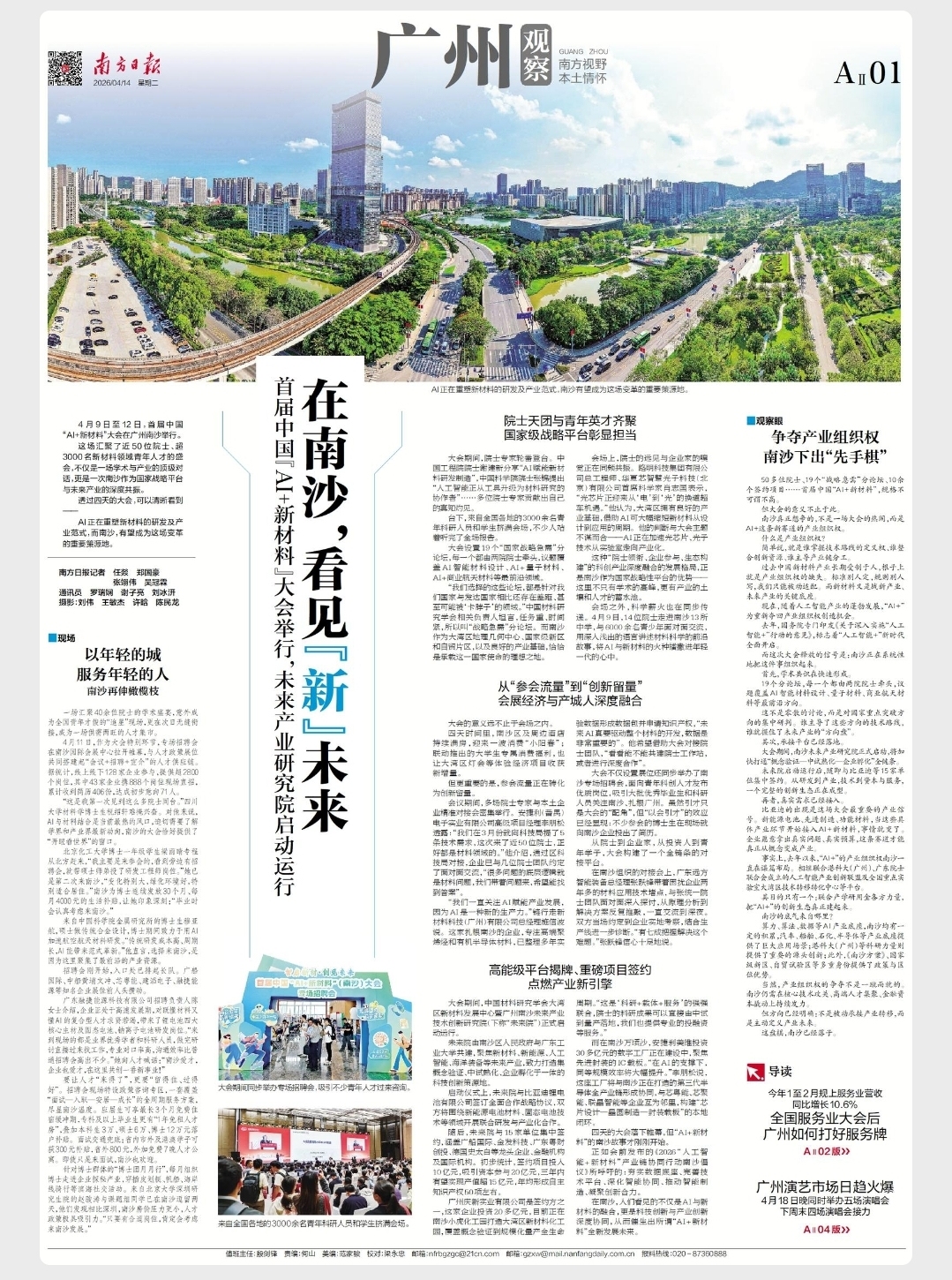 4月9日至12日,首届中国“AI+新材料”大会在广州南沙举行。