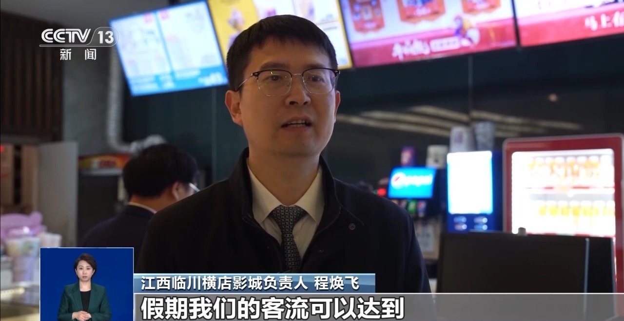 江西临川横店影城负责人 程焕飞:假期我们的客流可以达到每天四五百人,上座率比平时高了百分之五十,人流上来了,我们的销售额也跟着增长。